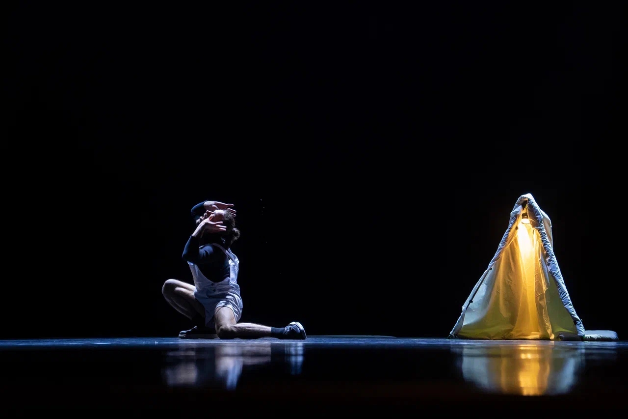 Работа о внутреннем поиске себя в себе и в мире вокруг. Поиск, который начинается с робких шагов в сторону пока ещё не самого зримого света, то есть освещения именно твоего пути. Порой этот процесс ужасно неуютный. Но это единственно верный путь. Классический для современного танца квадрат света на сцене как кокон. Есть предложенные границы, но чтобы прожить жизнь по своему чувству, их надо преодолеть. А где-то смело разорвать. Или раскусить зубами. Но во имя любви и мечты.